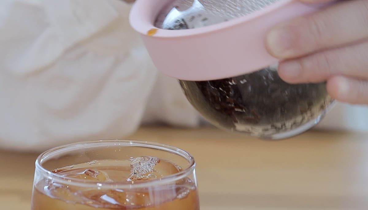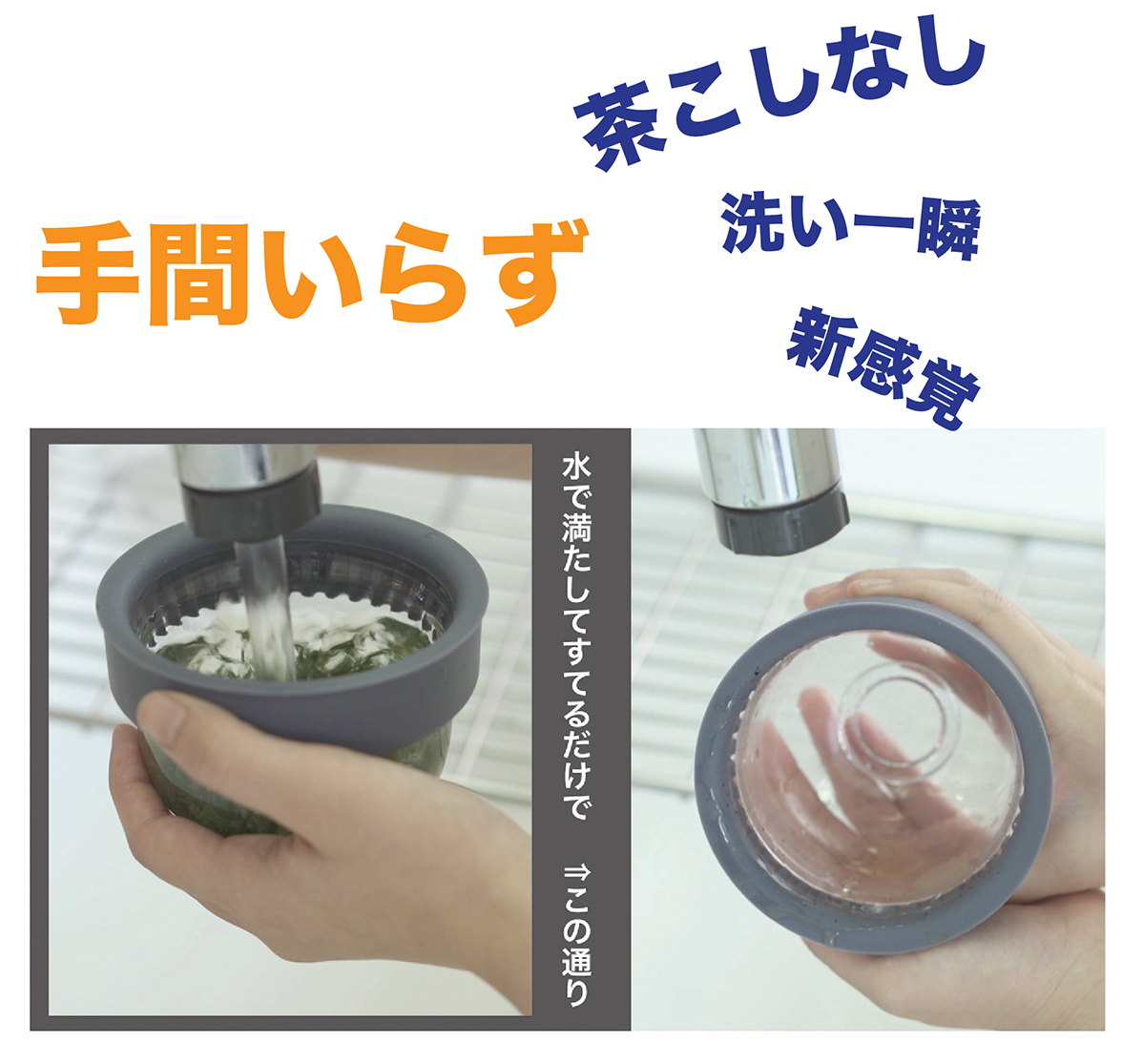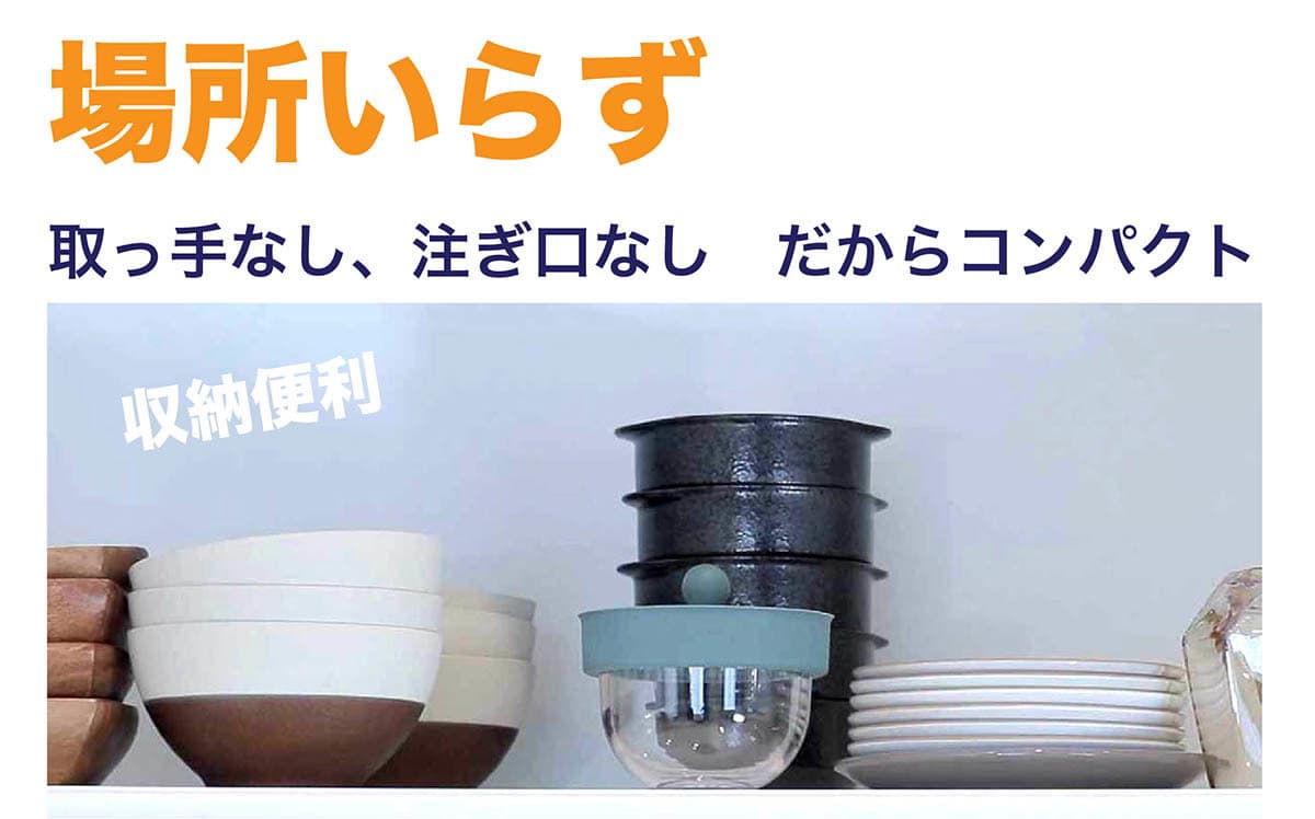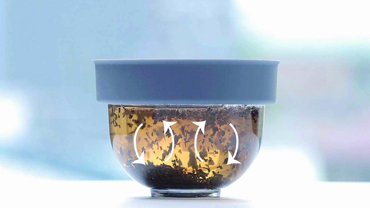 本体の微妙なカーブとふたの極小3点の突起により、本体とふたの間に、ごく細い線状のすき間を作って茶をこします。