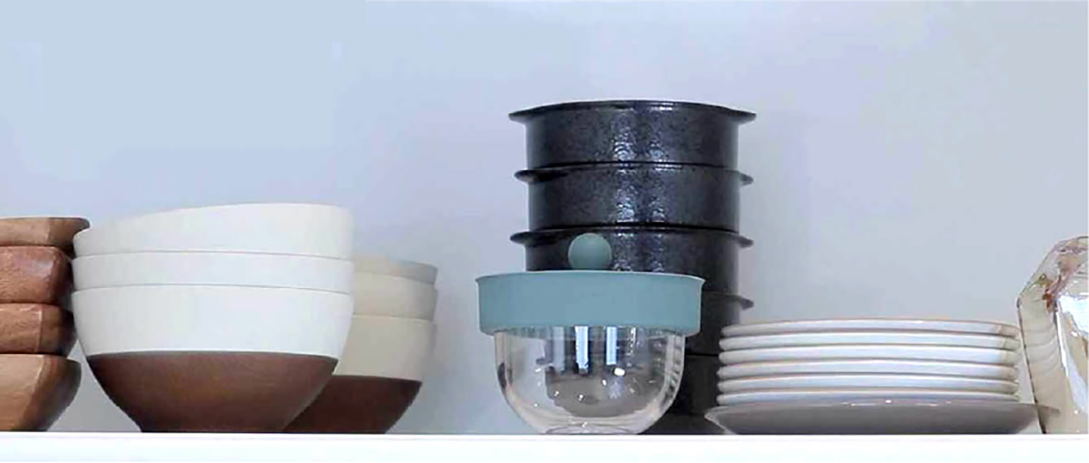 本体の微妙なカーブとふたの極小3点の突起により、ふたのまわりにごく細い線状のすき間を作り茶をこします。